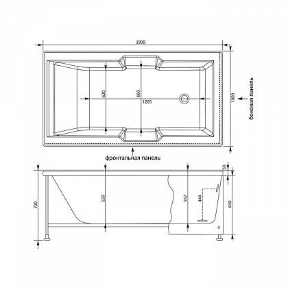 Прямоугольная фронтальная панель из акрила устанавливается спереди ванны Vega и позволяет придать ее конструкции целостный и эстетичный вид, скрывая сантехнические сливы, а также мотор и подводку к форсункам у ванны с системой гидромассажа. Панель для ванной становится защитным экраном, который служит профилактикой скопления загрязнений под ложей ванны, сохраняя экологическую чистоту помещения.
