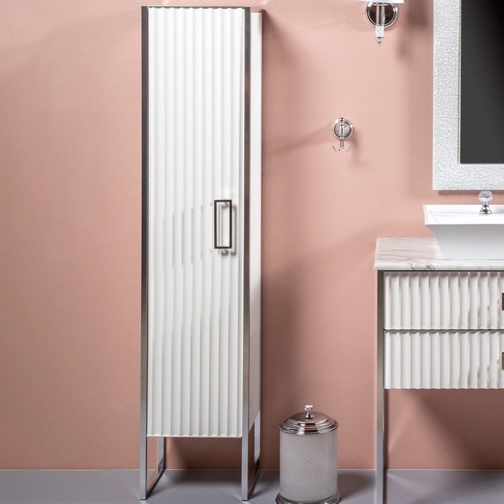Шкаф-пенал Armadi Art Monaco не только не только функциональный предмет интерьера ванной комнаты, но идеальное эргономичное дополнение дизайна, как небольшого, так и крупного помещения. Напольный способ установки производится непосредственно на пол, при этом конструкция максимально устойчива при серьезных физических нагрузках.Компания Armadi Art использует при производстве высококачественные водоотталкивающие материалы (алюминий), соответствующие всем необходимым требованиям безопасности. Серия Monaco отличается превосходным дизайном с соблюдением всех актуальных элементов стиля ретро. Основным цветом, в котором выполнен шкаф-пенал Armadi Art Monaco является белый, отлично подходящий большинству дизайнерских решений. Шкаф-пенал предусматривает удобную и вместительную систему хранения, состоящую из дверей. Качественные доводчики позволяют обеспечить мягкое и тихое закрывание. Ключевые габариты изделия: ширина 35 см, глубина 30 см, высота 170 см.Страной бренда Armadi Art является Италия, все товары производятся с выполнением соответствующих стандартов качества, что позволяет быть полностью уверенными в долговечности и надежности. Шкаф-пенал Armadi Art Monaco поможет сделать уютным любой интерьер и создать идеальную ванную комнату.