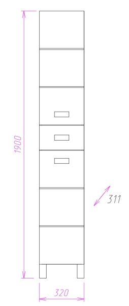 Размер пенала с ножками: 32х32х190 см.