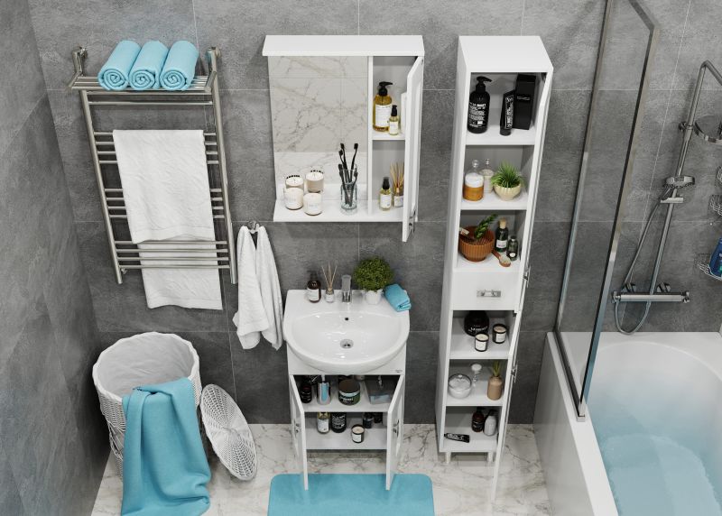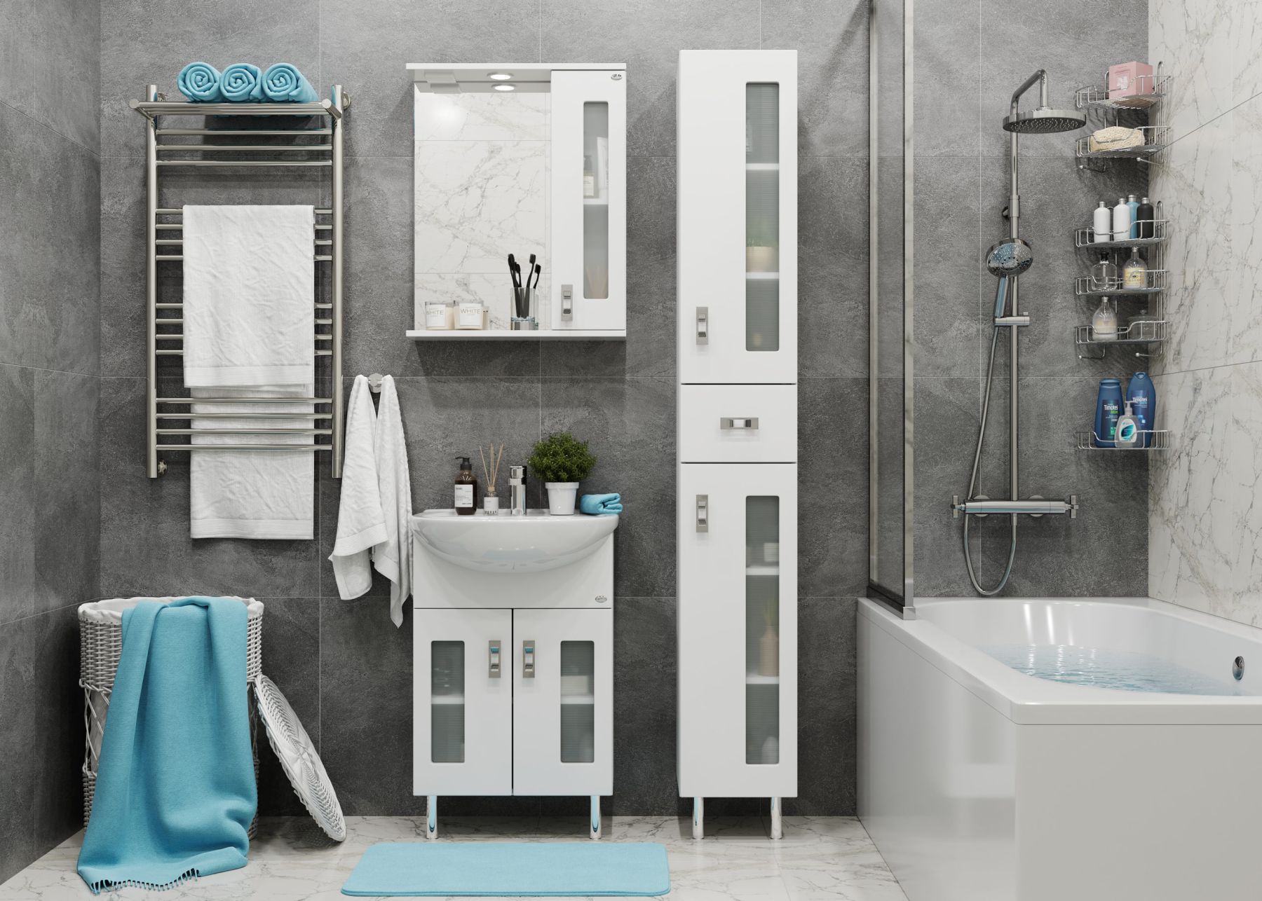 Корпус пенала выполнен из ЛДСП, фасад - из МДФ в пленке, специально предназначенных для использования в условиях высокой влажности.