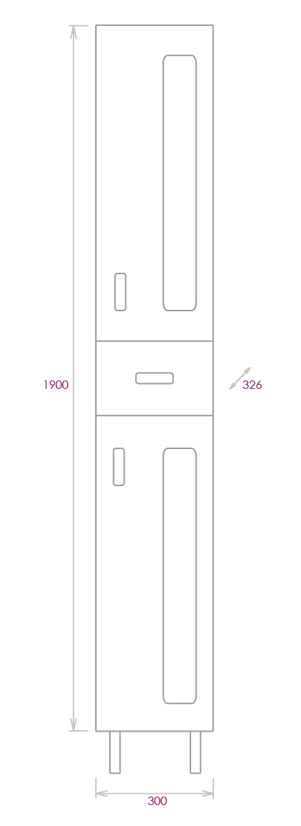 Размер пенала с ножками: 30х33х190 см.