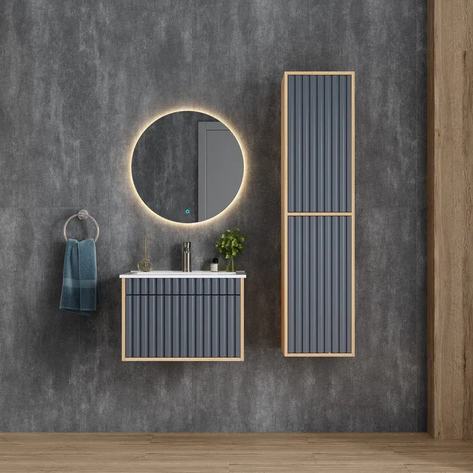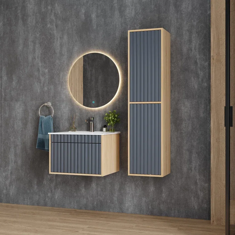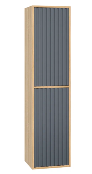 Рифленый серый матовый фасад с покрытием SoftTouch и корпус цвета дуба с роскошной текстурой подчеркнет изысканный вкус владельца и станет центральным элементом декора.