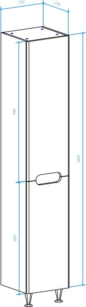 Вертикальное хранение: При ширине всего 35 см пенал использует высоту (180–190 см) для организации системы хранения: верхние секции для полотенец и косметики, встроенная бельевая корзина в нижней части для грязного белья.