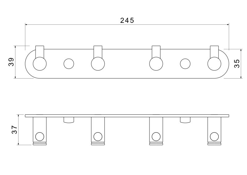 Общий размер (мм): 245*37*35Основной материал: латунь, нержавеющая стальМонтаж: на стенуМетод крепления: шурупыКоличество крючков: 4Назначение: аксессуарыТип продукта: крючок для полотенецГарантия (лет): 5Легкая установка