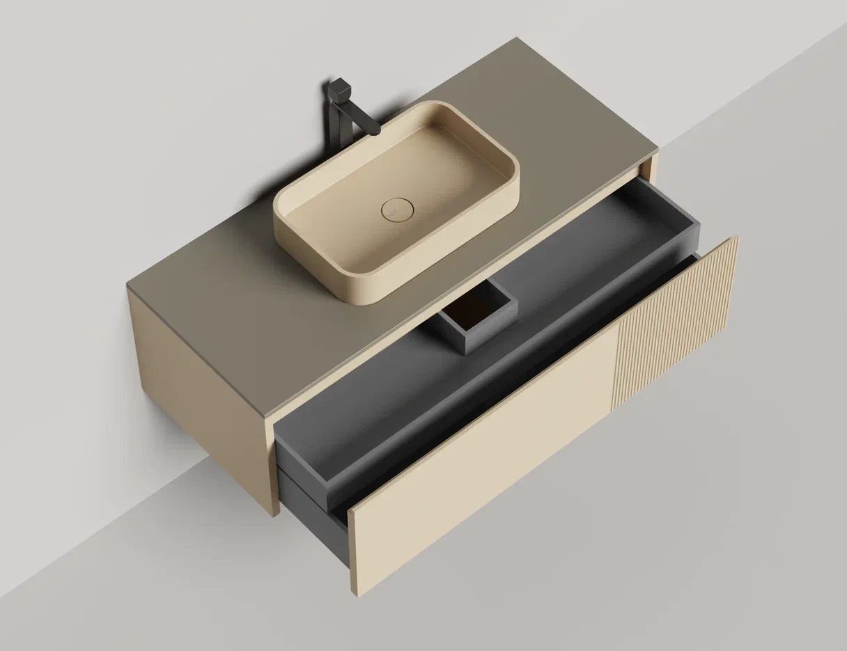 Наполнение для тумбы включает: блоки ячеек для тумб, коврики и комплект внутренней подсветки, которые помогут организовать пространство и создать более удобный доступ к вещам.Тумба DOMINO, дополненная столешницей COSTA из каменного литья S-Stone, гарантирует практичность и простоту ухода.