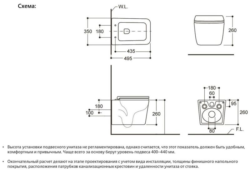 - Режим смыва воды:определяется системой инсталляции