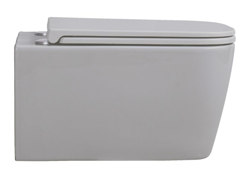 Подвесной безободковый унитаз с системой скрытого монтажа, крышкой-сидением из дюропласта с функцией soft-close и quick release.