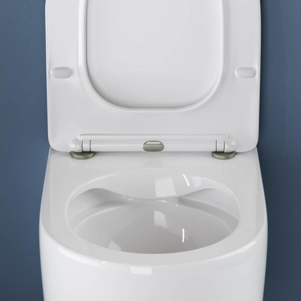 Подвесной унитаз Moments Rimless, глубокий смыв, с крепежом для полностью скрытого монтажа, ультра тонким с сидением и крышкой с функцией плавного закрытия, дюропласт