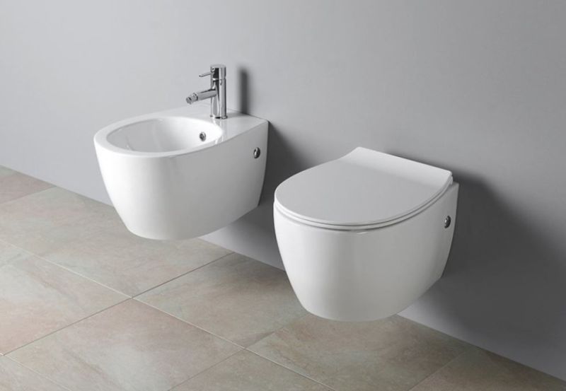 - Прилегание унитаза к стене:вплотную