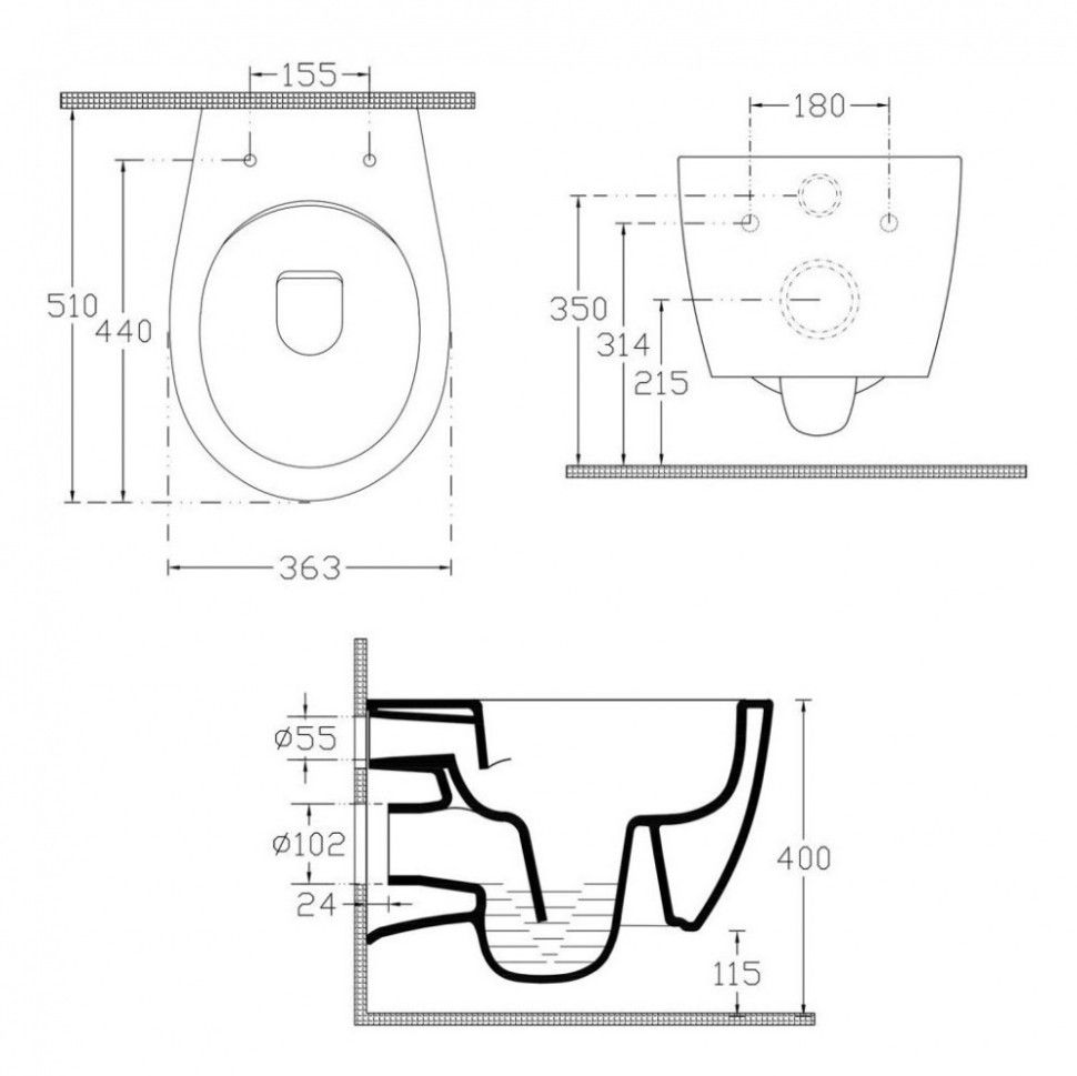 Унитаз Sentimenti подвесной 363*510*400 цвет-белый, 10AR02007SV