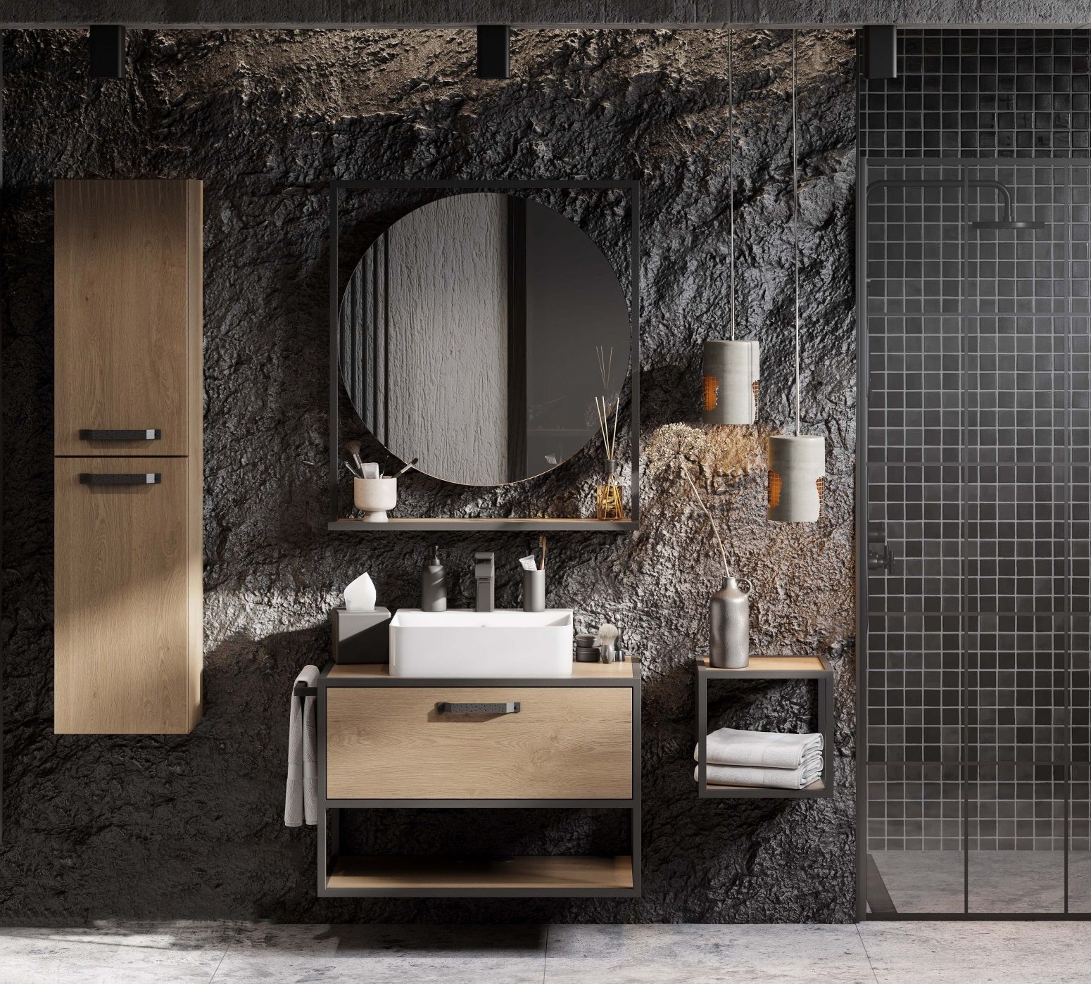 - Она идеально подойдет для того, чтобы расставить в ванной комнате четкие акценты в дизайне и обеспечить дополнительное место для хранения
