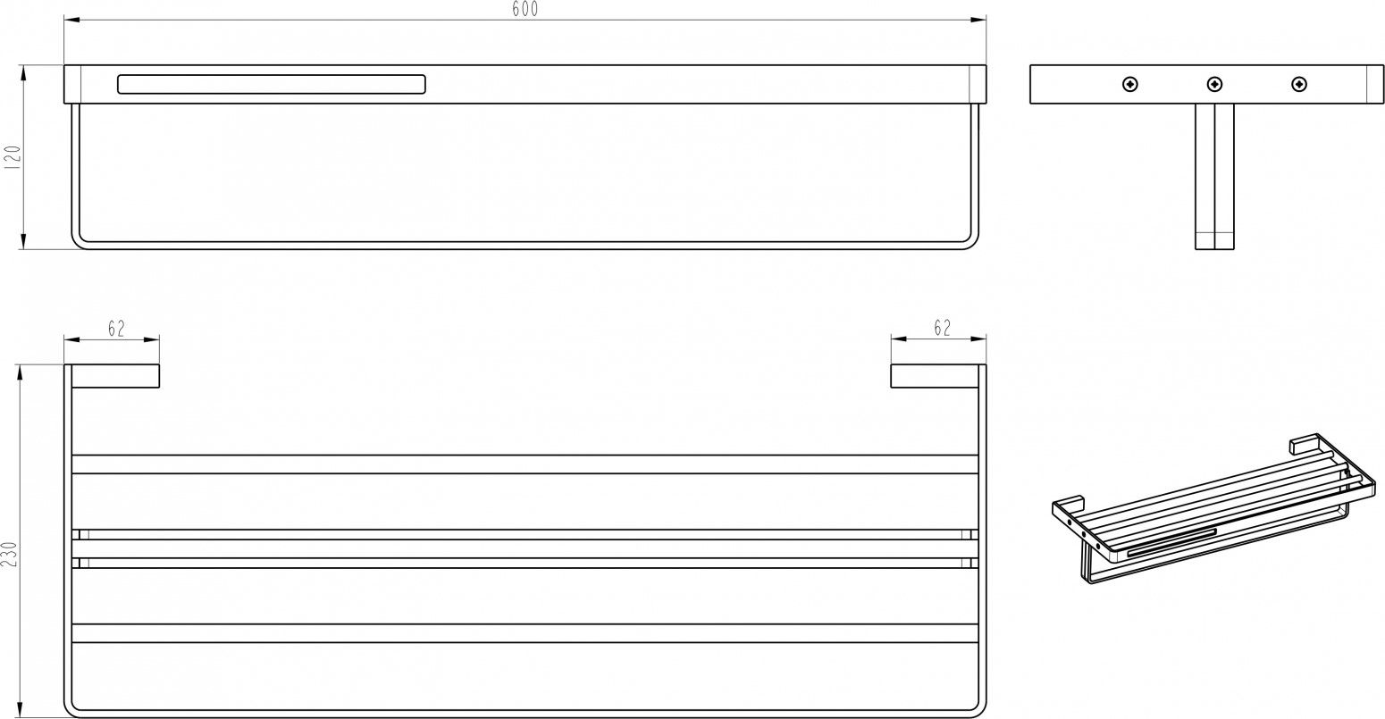 Полка Boheme Q 10947-B для полотенец роскошно подойдет как для просторного помещения, так и для небольшой ванной комнаты. Серия Q отличается превосходным дизайном с соблюдением всех важных элементов современного стиля.Бренд Boheme в своей продукции использует идеальное, сочетание материалов (латунь) высокого качества, с абсолютным отсутствием вредных для здоровья веществ. Черный, основной цвет исполнения Boheme Q, гармонирующий с большинством интерьерных решений. Ключевые габариты изделия: ширина 60 см, глубина 23 см, высота 12 см. Прямоугольная форма 10947-B прослеживается во всех линиях и придает аксессуару неповторимый стиль. Полка размещается в максимально удобном положении на стене благодаря подвесному способу установки.Страной бренда Boheme является Италия, все товары производятся с выполнением соответствующих стандартов качества, что позволяет быть полностью уверенными в долговечности и надежности. Полка Boheme Q 10947-B для полотенец поможет сделать уютным любой интерьер и создать идеальную ванную комнату.