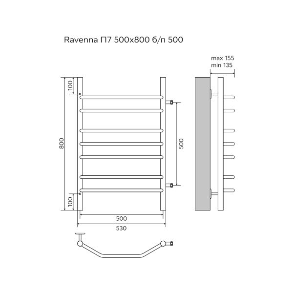 Полотенцесушитель водяной AZARIO RAVENNA AZ07558 500/800 7 секций, боковое подключение, 1, хром купить