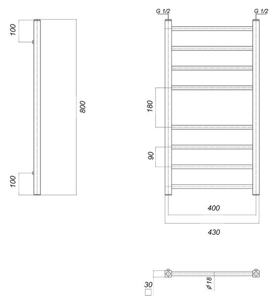 М/о расстояние (межосевое расстояние): 400Количество перекладин: 8Коллекция: КубаТип: водяныеЦвет: хромШирина (мм): 430Высота (мм): 800Глубина (мм): 90-80Вес: 8,1Объем: 0,0381Страна: РоссияГарантия: 10 лет