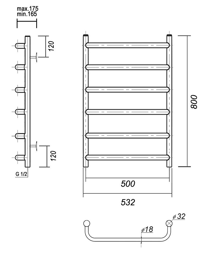 М/о расстояние (межосевое расстояние): 500Количество перекладин: 6Коллекция: СтефаноТип: водяныеЦвет: хромШирина (мм): 532Высота (мм): 800Глубина (мм): 175-165Вес: 4,8Объем: 0,048Тэн/подключение: нижнееСтрана: РоссияГарантия: 10 лет
