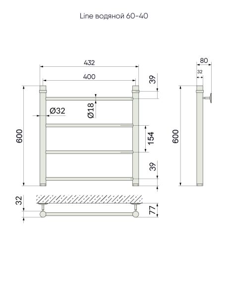 Водяной полотенцесушитель серии «Лесенка» Line имеет большое количество перекладин, что удобно для сушки большого количества текстильных изделий.
