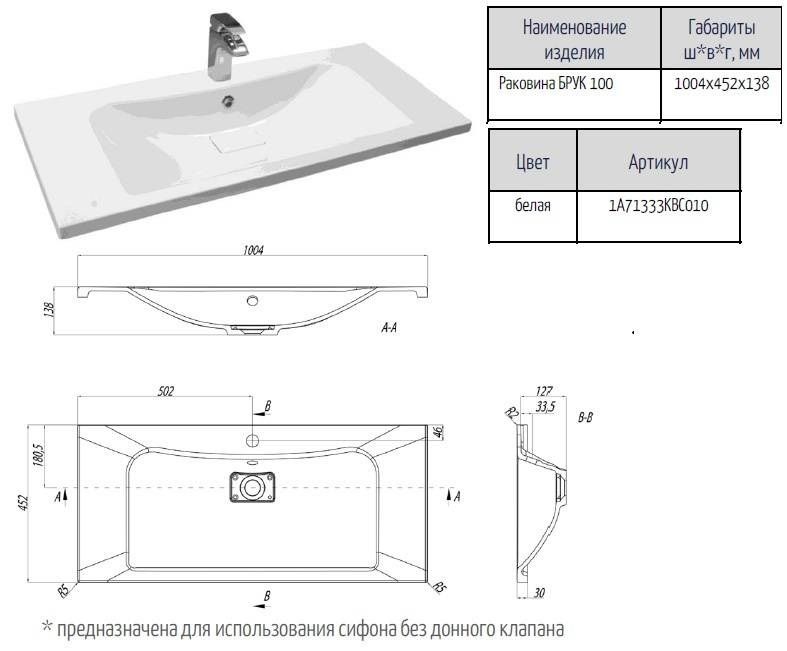 Раковина Акватон Брук 100см 1A71333KBC010 купить