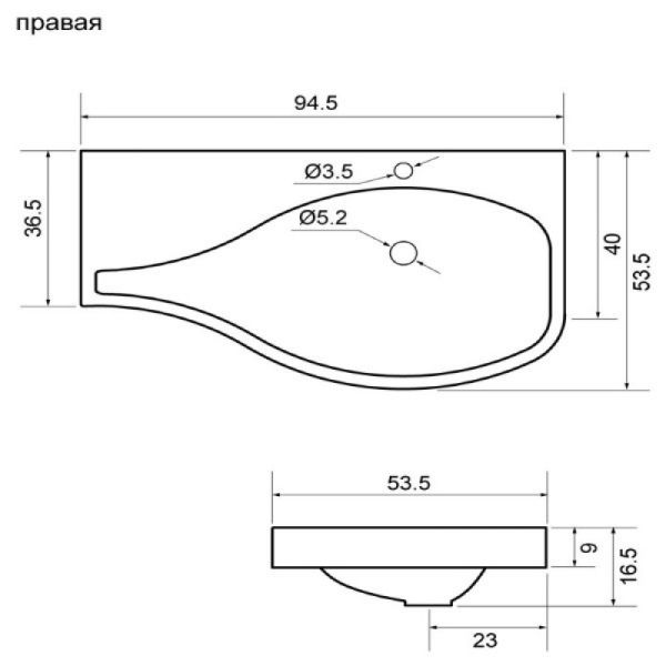 Раковина Aquanet Сопрано 169396 правая 95 см белый купить
