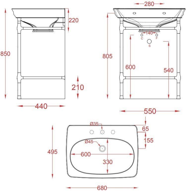 - Отверстия под смеситель:1