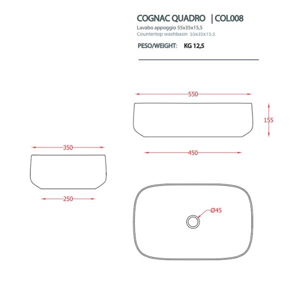 Раковина ArtCeram Cognac COL008 39 00 cocoa 55 смArtCeram Cognac COL008 39 00 Раковина накладная на 55 см, размер 55x35хр15,5 см. Без перелива и плоскости под смеситель. Монтаж накладной на столешницу. Цвет cocoa.