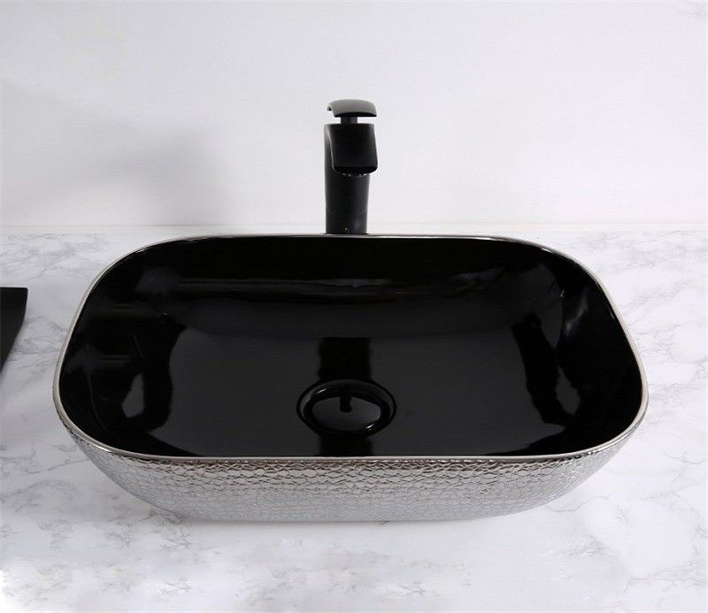 Раковина CeramaLux D1333H022 черно-серая 46 смПодходит для ванных комнат различной планировки в современном стиле и отличается стильной и изящной формой.Материал: санфаянс.В комплекте поставки: раковина.