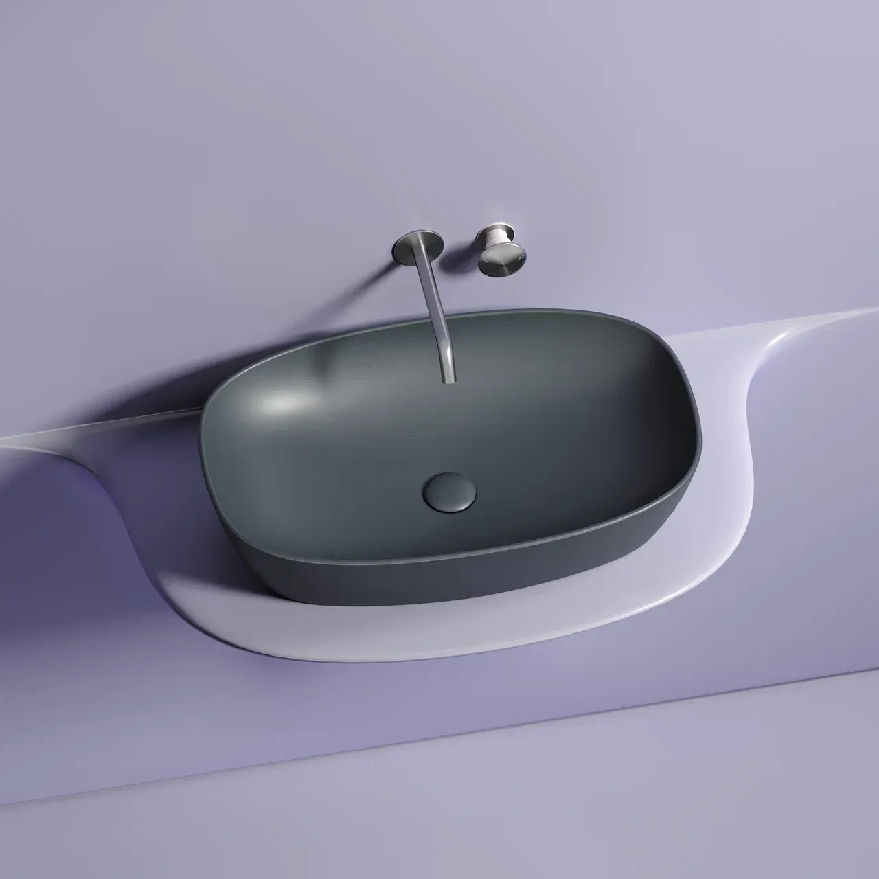 Умывальник чаша накладная овальная (цвет Темный Антрацит Матовый) Element 600*380*138мм