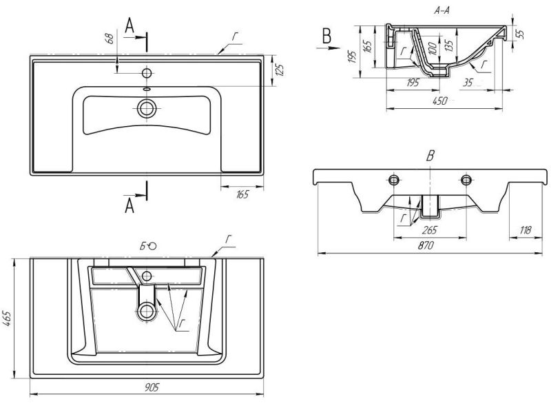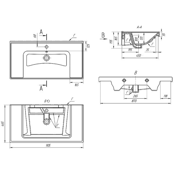 Тип: раковиныПо форме: прямоугольныеРазмер, мм (ШxГxВ): 905x465x195Размер в упаковке, мм (ШxГxВ): 935x495x225Цвет: белыйВес с упаковкой, кг: 21.5По монтажу: мебельнаяМатериал: керамика