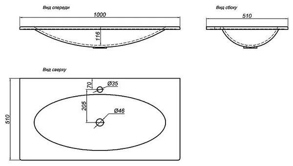 Отверстие под смеситель: D 3,5 см.