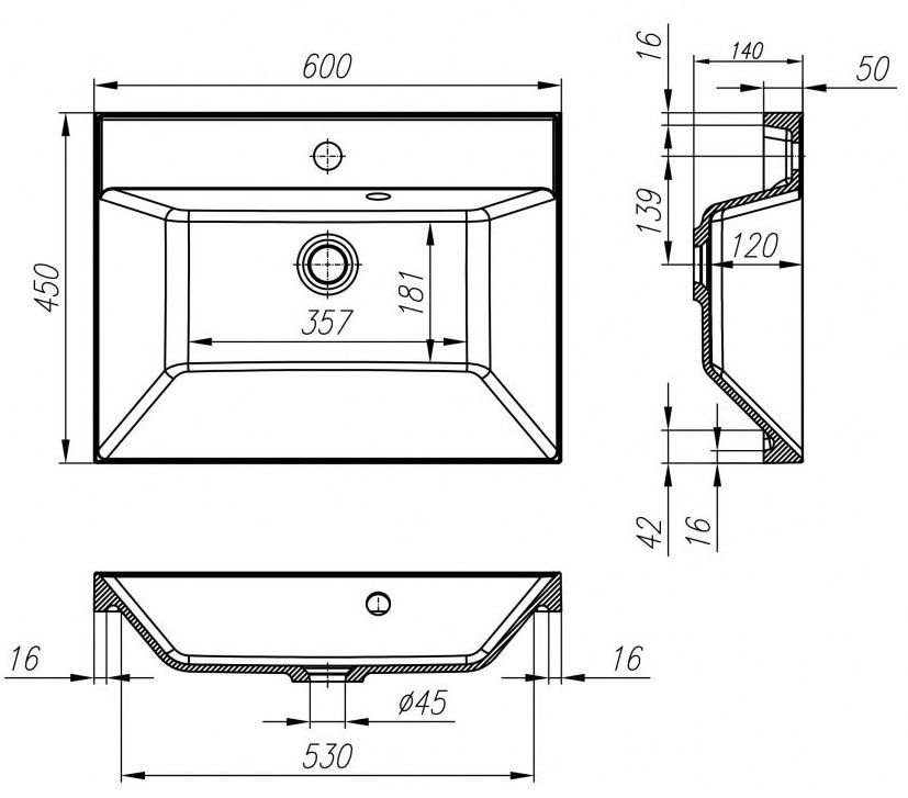 Раковина Art&Max выполнена в современном стиле и легко впишется в интерьер любой ванной комнаты. Накладная конструкция изделия позволяет произвести быстрый монтаж, экономит место и обеспечивает изящный внешний вид. Модель выполнена из искусственного мрамора с верхним слоем Гелькоута, который образует декоративно-защитное покрытие.Габариты:Ширина, см: 60Глубина, см: 45Высота, см: 5
