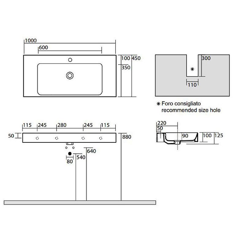 • Отверстия под смеситель: