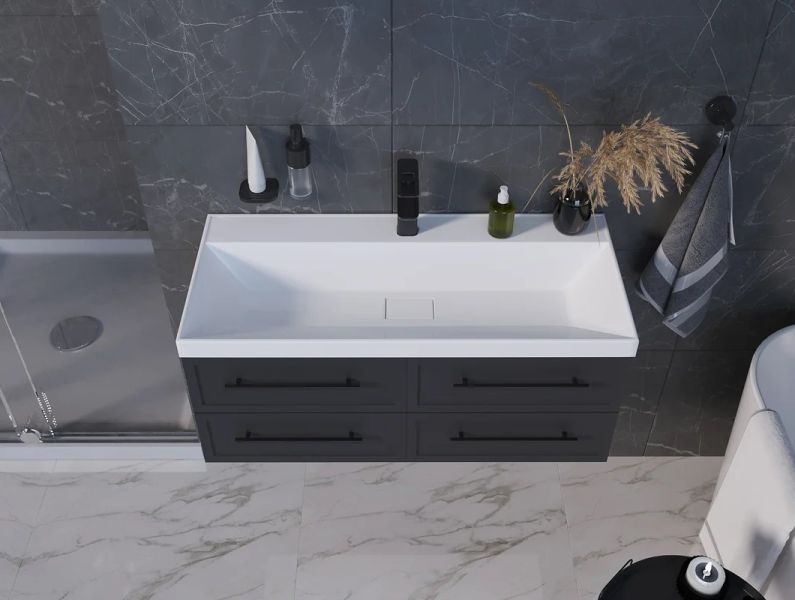Раковина встраивается на мебель, в столешницу и на подстолье. Верхний слой представляет собой декоративно-защитное покрытие - импортный сантехнический гелькоут. Донный клапан отсутствует. В комплектацию входит декоративная накладка на слив.