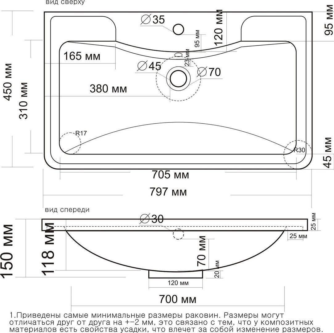 - Отверстия под смеситель:1