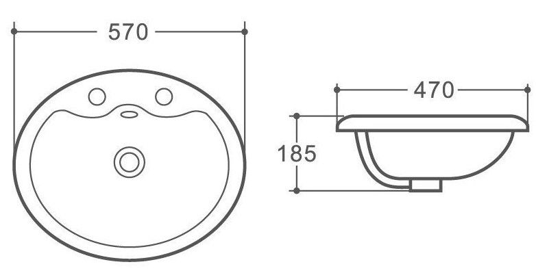 Раковина керамичеcкая полувстраиваемая для установки на столешницу