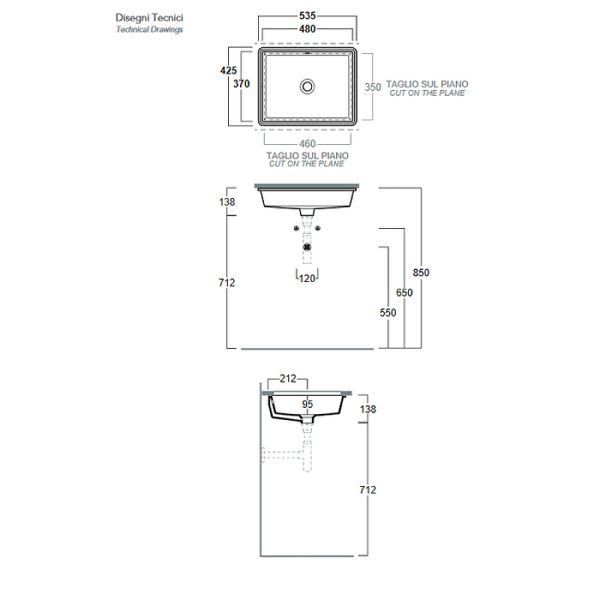 Габариты чаши (ШхВхГ): 480х138х370 мм.