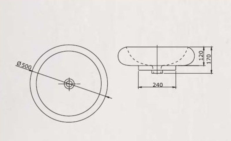 Накладная раковина круглая, цвет белый, без отверстия под смеситель, с приливным каналом