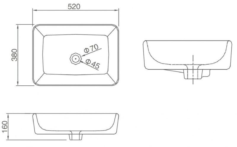 Габариты (шгв): 52x38x14 смНакладнаяФарфороваяУстанавливается на столешницуДиаметр слива: 4.5 смУстан. перелива невозможна.Без антигрязевого покрытияБез антибактериального покрытия