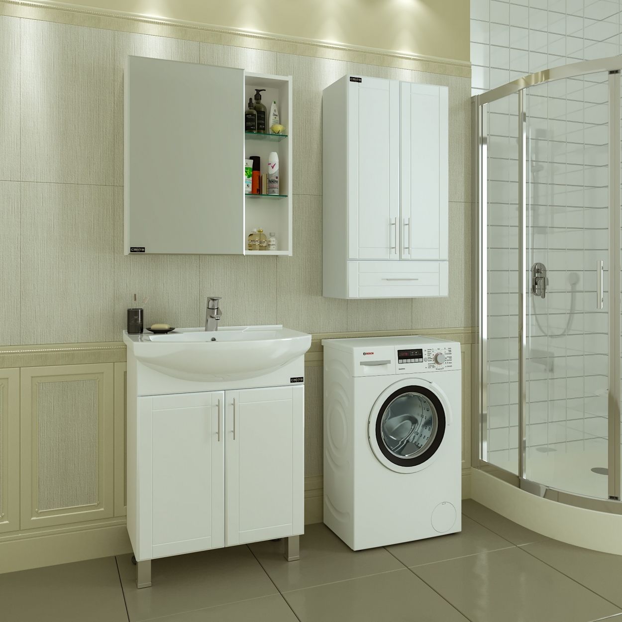 Шкаф СанТа отлично впишется в дизайн любой ванной комнаты, будь то компактная ванная в многоэтажном доме или большой санузел в загородном коттедже.Компания СанТа использует при производстве высококачественные водоотталкивающие материалы (ВЛДСП), соответствующие всем необходимым требованиям безопасности. Коллекция выполнена в эксклюзивном дизайнерском решении в лучших традициях современного стиля. Белый, основной цвет исполнения СанТа, отлично подходящий большинству дизайнерских решений. Шкаф предусматривает удобную и вместительную систему хранения, состоящую из дверей, ящиков. Качественные доводчики позволяют обеспечить мягкое и тихое закрывание.Россия родина бренда СанТа, вся продукция производится со строгим соблюдением всех стандартов, благодаря чему можно быть абсолютно уверенным в надежности и высоком качестве. Шкаф СанТа создаст уют и комфорт в любом дизайнерском решении, и ванная комната обретет неповторимый элемент интерьера.