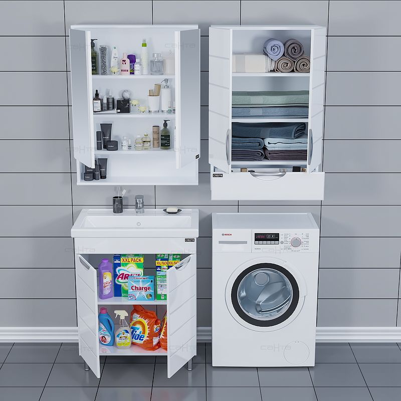 Шкаф СанТа отлично впишется в дизайн любой ванной комнаты, будь то компактная ванная в многоэтажном доме или большой санузел в загородном коттедже.Компания СанТа использует при производстве высококачественные водоотталкивающие материалы (ВЛДСП), соответствующие всем необходимым требованиям безопасности. Коллекция выполнена в эксклюзивном дизайнерском решении в лучших традициях современного стиля. Белый, основной цвет исполнения СанТа, отлично подходящий большинству дизайнерских решений. Шкаф предусматривает удобную и вместительную систему хранения, состоящую из дверей, ящиков. Качественные доводчики позволяют обеспечить мягкое и тихое закрывание.Россия родина бренда СанТа, вся продукция производится со строгим соблюдением всех стандартов, благодаря чему можно быть абсолютно уверенным в надежности и высоком качестве. Шкаф СанТа создаст уют и комфорт в любом дизайнерском решении, и ванная комната обретет неповторимый элемент интерьера.