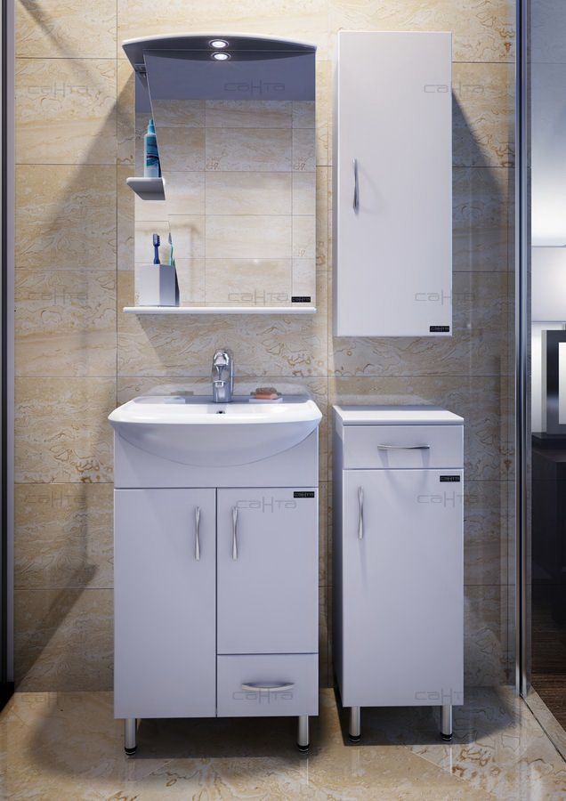 Шкаф СанТа не только функциональный предмет интерьера ванной комнаты, но и великолепное эргономичное дополнение дизайна, как небольшого, так и крупного помещения.Компания СанТа использует при производстве высококачественные водоотталкивающие материалы (ВЛДСП), соответствующие всем необходимым требованиям безопасности. Коллекция выполнена в эксклюзивном дизайнерском решении в лучших традициях современного стиля. Белый, основной цвет исполнения СанТа Стандарт, отлично подходящий большинству дизайнерских решений. Шкаф предусматривает удобную и вместительную систему хранения, состоящую из дверей. Качественные доводчики позволяют обеспечить мягкое и тихое закрывание.Россия родина бренда СанТа, вся продукция производится со строгим соблюдением всех стандартов, благодаря чему можно быть абсолютно уверенным в надежности и высоком качестве. Шкаф СанТа создаст уют и комфорт в любом дизайнерском решении, и ванная комната обретет неповторимый элемент интерьера.