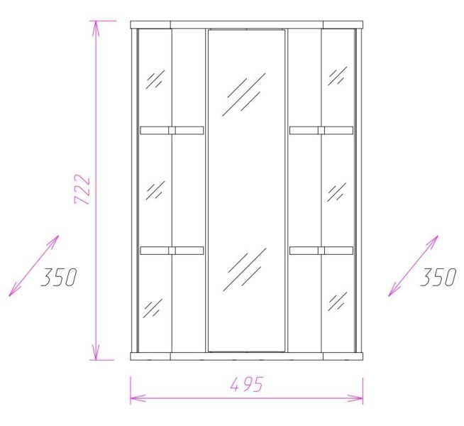 Корпус шкафа-зеркала выполнен из ЛДСП, фасад - из ЛДСП и ЛМДФ в пленке, устойчивых к механическим воздействиям, перепадам температур и высокой влажности.