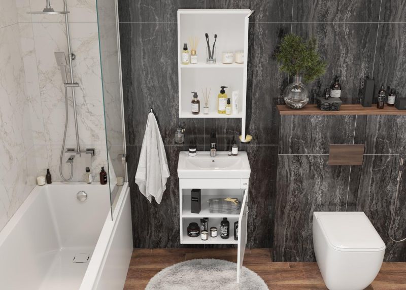 Шкаф-зеркало выполнен из ЛДСП, устойчивой к механическим воздействиям, перепадам температур и высокой влажности.