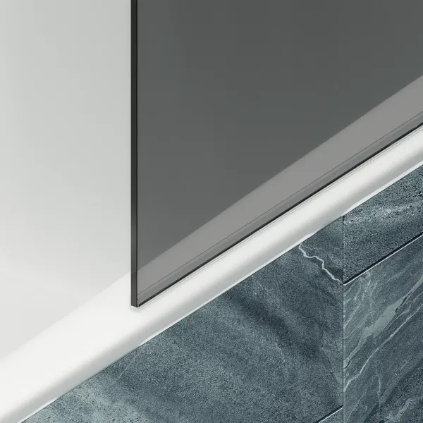 Монтаж осуществляется с помощью алюминиевого профиля, что обеспечивает надежность крепления и безопасность использования стеклянной перегородки для ванной. Также, шторка оснащена специальным уплотнителем, который предотвращает попадание воды на пол ванной комнаты. Закаленное стекло, цвет Графит, толщина 8 мм 1400х300 мм - 1 шт.