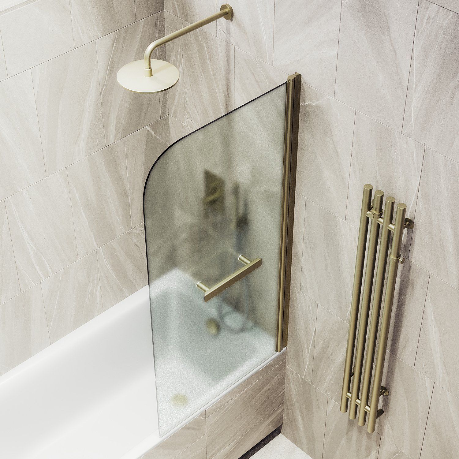 Стеклянные шторки для ванны на монопетле – это стильное и функциональное дополнение для Вашей ванной комнаты. Они изготовлены из закаленного стекла, что делает их прочными и долговечными. Монопетля обеспечивает удобное открывание и закрывание шторки, а также надежную фиксацию ее на ванне. Такие шторки легко моются и не боятся воздействия воды, что делает их идеальным выбором для ванной комнаты. Полотенцесушитель, интегрированный в стеклянную шторку, позволяет быстро высушить полотенца и другие текстильные изделия. Закаленное стекло, цвет сатин, толщина 6 мм 1400х640 мм - 1 шт.