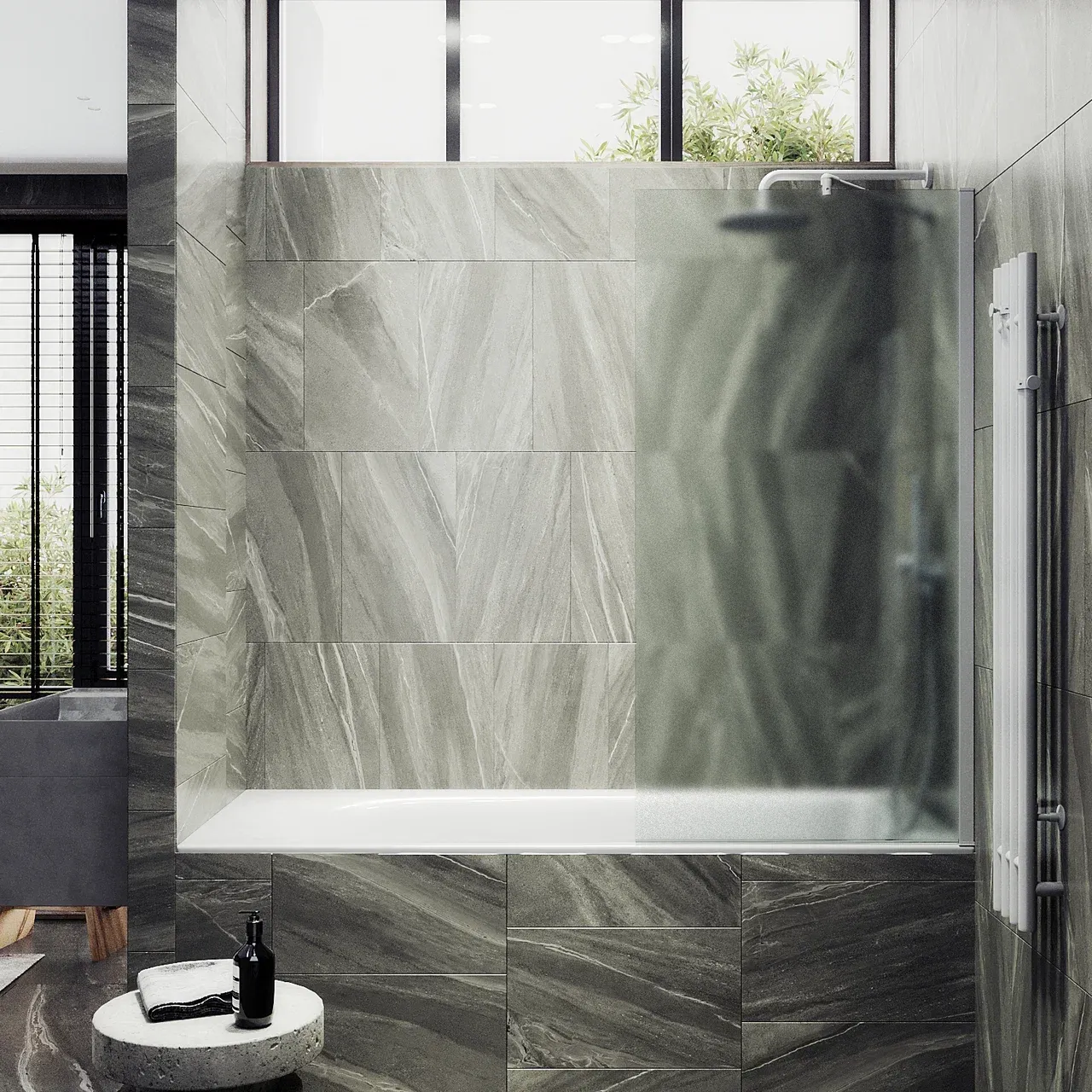 Монтаж осуществляется с помощью алюминиевого профиля, что обеспечивает надежность крепления и безопасность использования стеклянной перегородки для ванной. Также, шторка оснащена специальным уплотнителем, который предотвращает попадание воды на пол ванной комнаты. Закаленное стекло, цвет Сатин, толщина 8 мм 1400х800 мм - 1 шт.