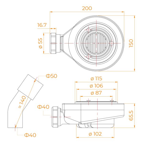 - сифон совместим с любым душевым поддоном, у которого диаметр сливного отверстия 90 мм;