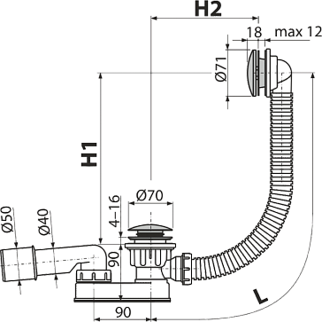 - Для слива воды из ванны в канализационный сток