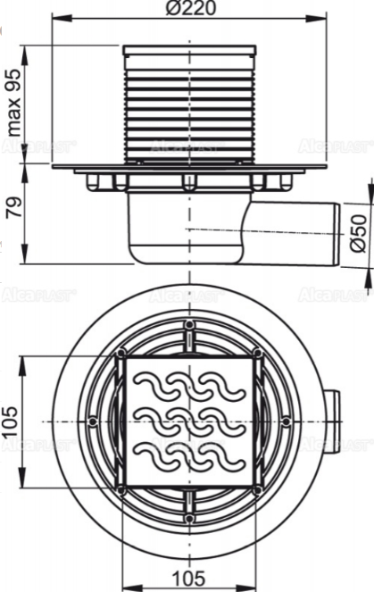 Сливной трап AlcaPlast 105 ? 105/50мм решетка - хром APV102 купить