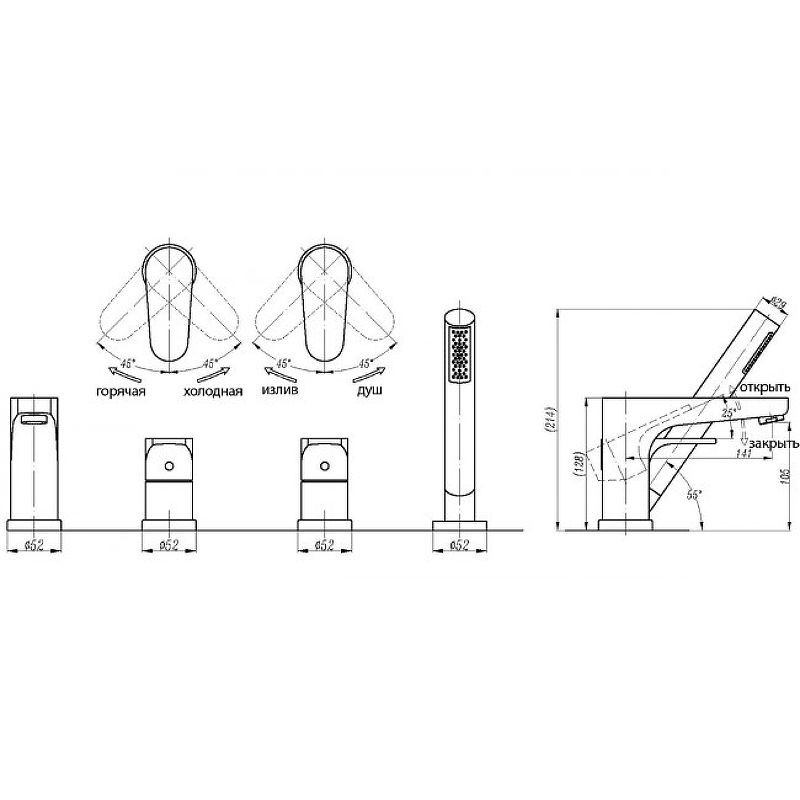 В комплекте поставки:Смеситель для ванны;