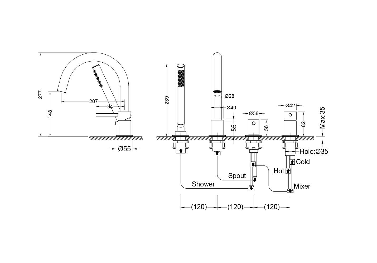 Вращение излива: фиксированный