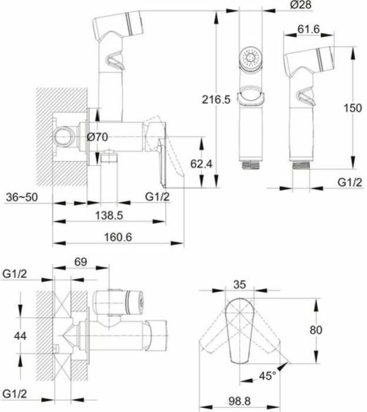 Смеситель Cersanit Vero 64106 с гигиеническим душем купить
